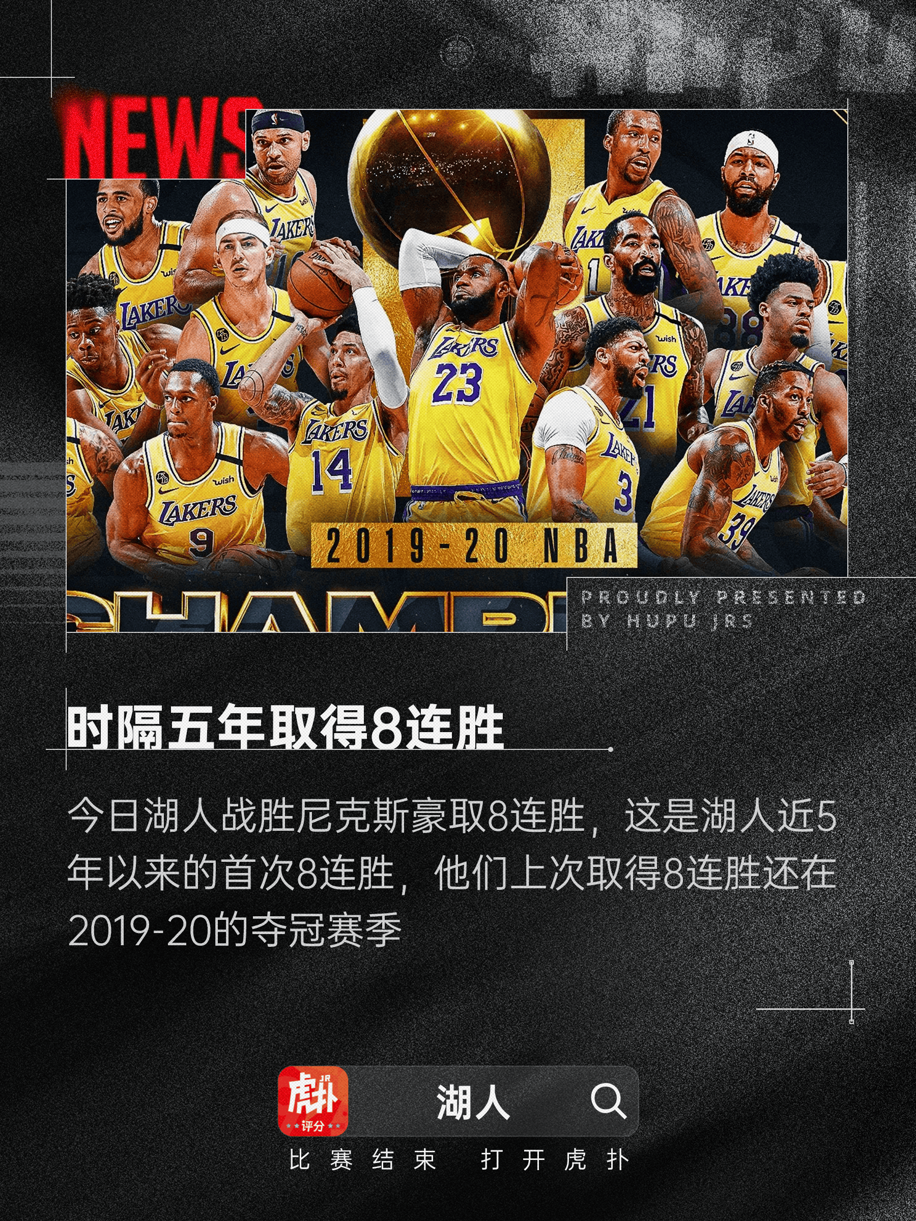 根据数据统计,首次上次这是连胜连胜湖人近5年以来的首次8连胜,他们上次8连胜还是冠赛在2019年的12月29日至2020年1月12日,该赛季他们最终夺冠。湖人还夺